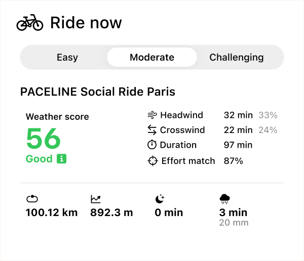 See predicted exertion for each section of your ride based on slope, wind, and your personal pace.